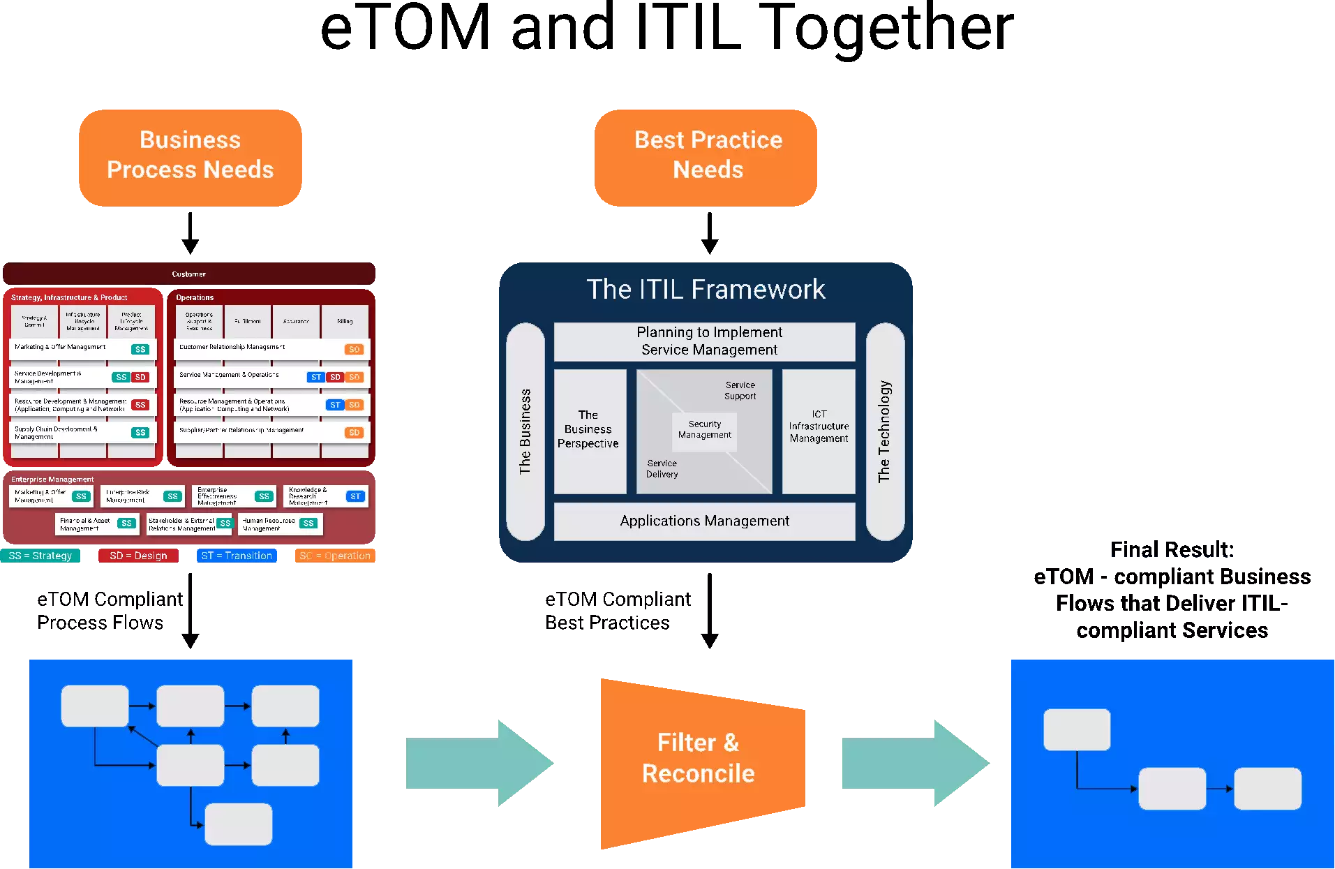 ITIL و eTOM مکمل همدیگه هستن و به راحتی میشه اونها رو با هم ادغام کرد.