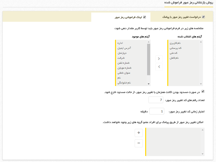 بازنشانی رمز عبور به کمک پیام کوتاه