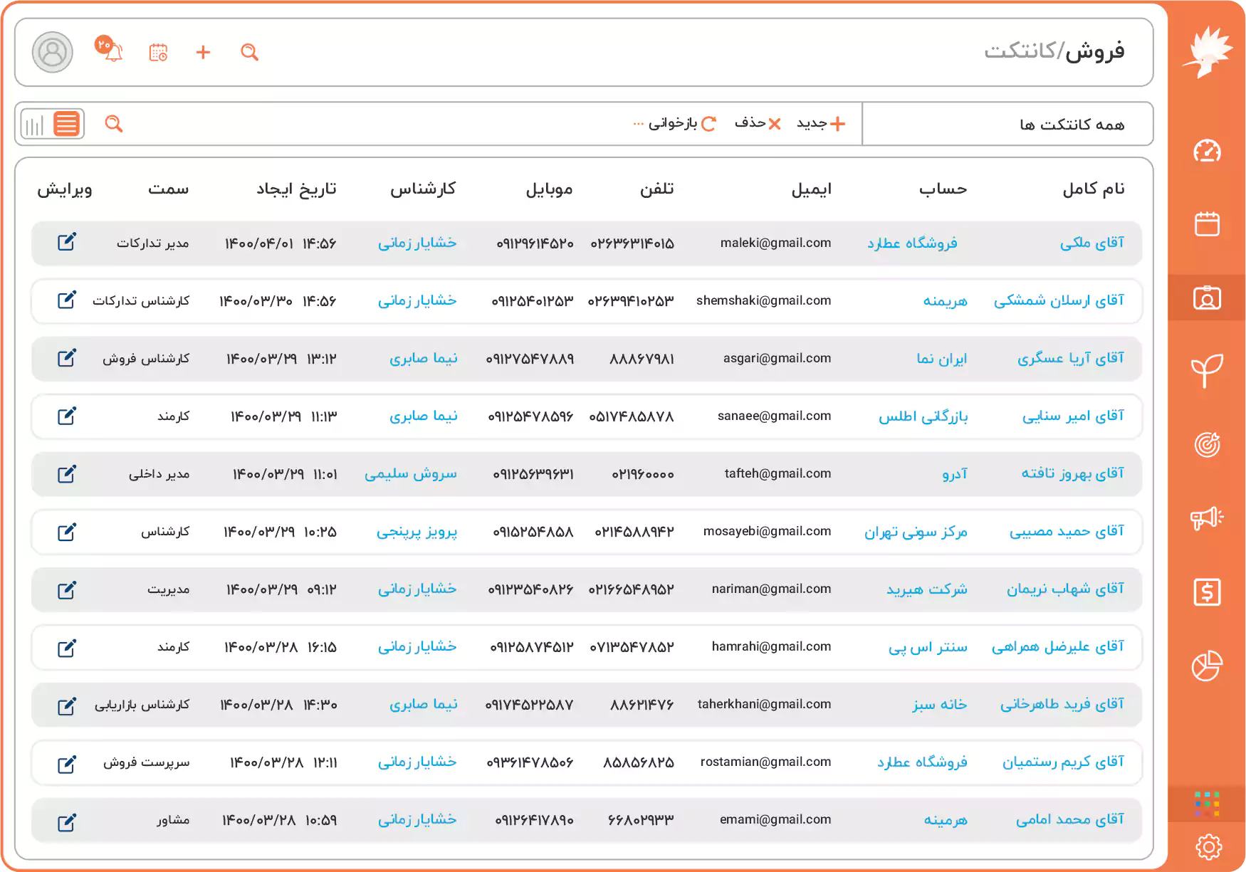 مدیریت اطلاعات مخاطبین: ذخیره و مدیریت اطلاعات مشتریان، مخاطبان، همکاران و همه افرادی که با آنها تعاملات کاری دارید