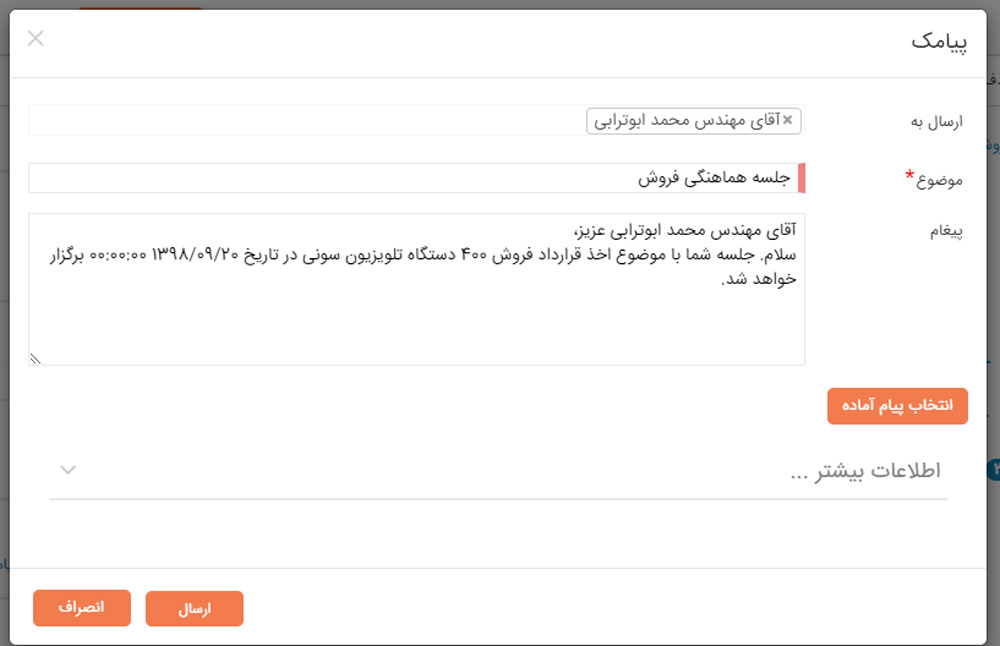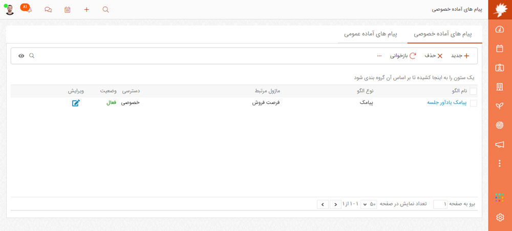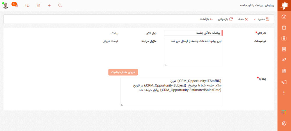 در نرم افزار CRM دانا پیغام های آماده رو سفارشی سازی کنید