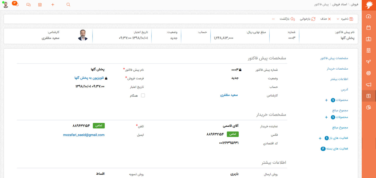 پیش فاکتور و فاکتورهای فروش صادر کنید.