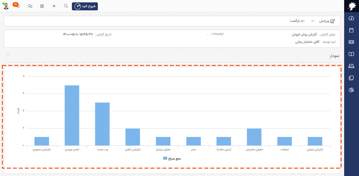 وضعیت کسب و کارتون رو با کمک گزارش فروش نرم افزار CRM دانا با دورههای قبلی مقایسه کنید
