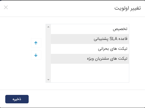 وقتی که یک تیکت در چند SLA صدق میکنه، میتونید با تغییر اولویت بندی SLA نرم افزار CRM دانا، دقیقترین زمان پاسخ رو برای اون تیکت تعیین کنید. مثلا اگه تیکتهای یک مشتری باید ظرف دو روز پاسخ داده شوند اما همه تیکتهای بحرانی باید در کمتر از 2 ساعت رسیدگی شده باشند، با چیدمان اولویت از اینکه تیکتهای بحرانی، مشتری ذکر شده هم در کمتر از 2 ساعت پاسخ داده میشن.