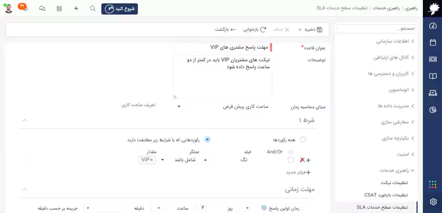 مبنای محاسبه زمان SLA رو بر اساس ساعت کاری خودتون در نرم افزار CRM دانا سفارشی کنید