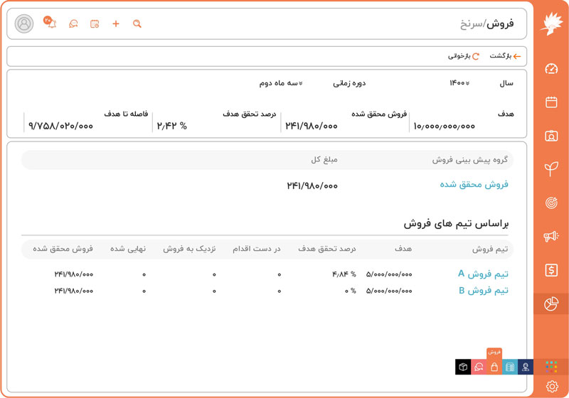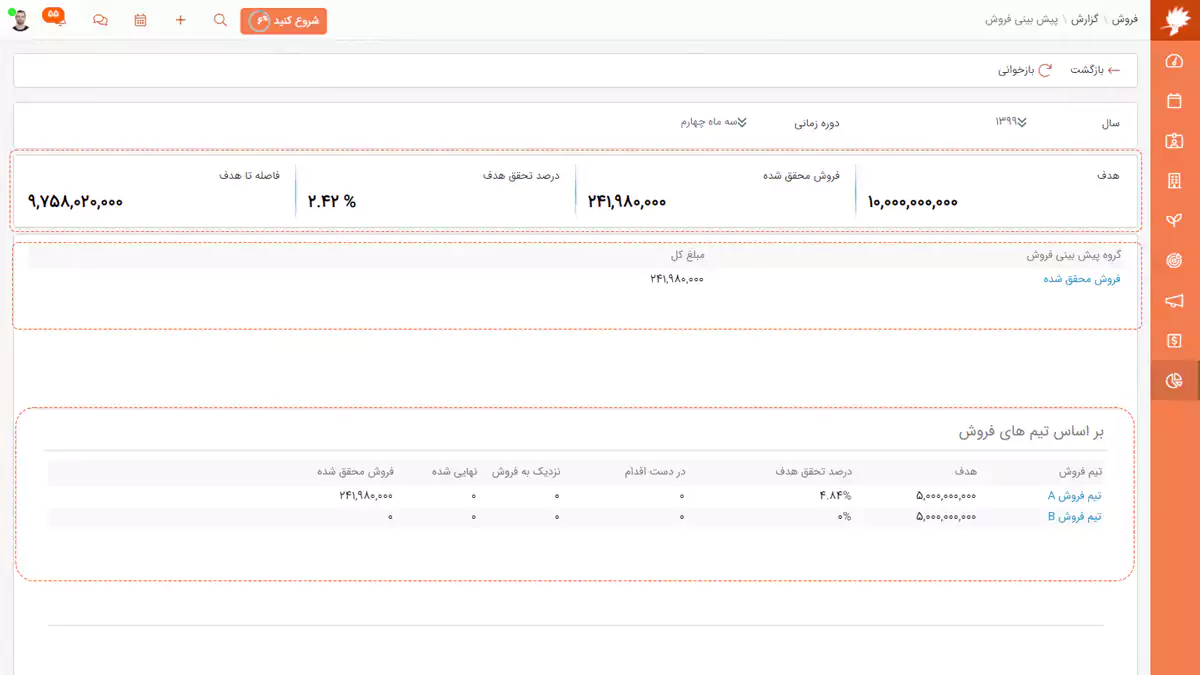 از طریق هدف گذاری و پیش بینی فروش در نرم افزار CRM دانا عملکرد تیم فروش رو ارزیابی کنید
