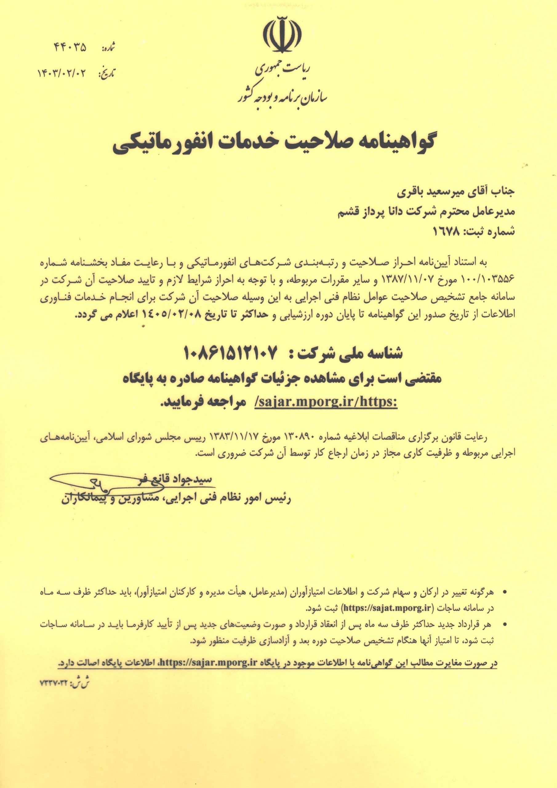 گواهینامه خدمات انفورماتیکی