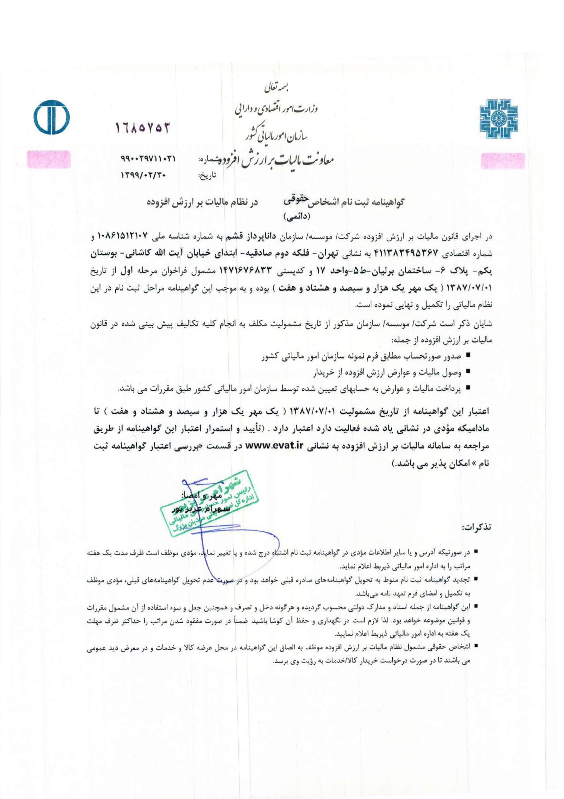 گواهینامه ارزش افزوده